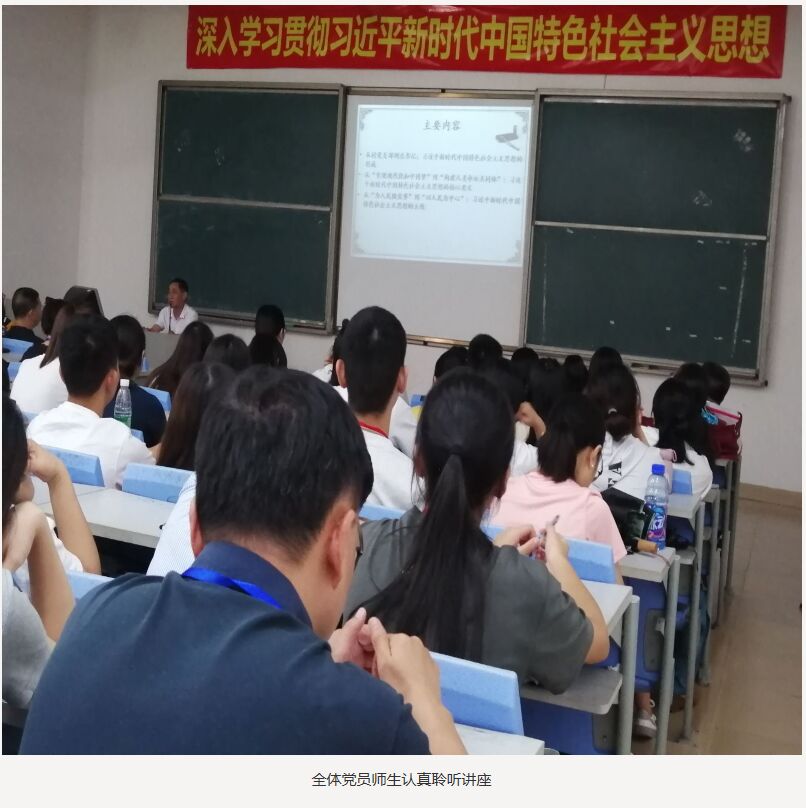 为深入学习贯彻习近平新时代中国特色社会主义思想,切实把《习近平新时代中国特色社会主义思想学习纲要》(以下简称《学习纲要》)的学习作为“不忘初心、牢记使命”主题教育的首要学习内容,把学习好贯彻好《学习纲要》精神作为当前首要的政治任务,10月15日下午,学校党委在教学楼101教室举行《学习纲要》宣讲会。宣讲会由党委宣传部副部长尹艳主持,珠海市委宣讲团成员白立强教授主讲。学校党委委员、全体师生党员和部分入党积极分子120余人参会。