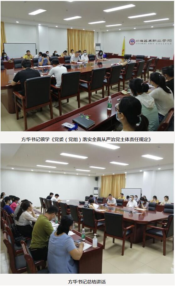 6月29日上午,学校党委理论中心组在综合楼506会议室开展“全面从严治党”专题学习。学习会由党委书记方华主持,党委委员、各基层党支部委员、组织员参加会议。