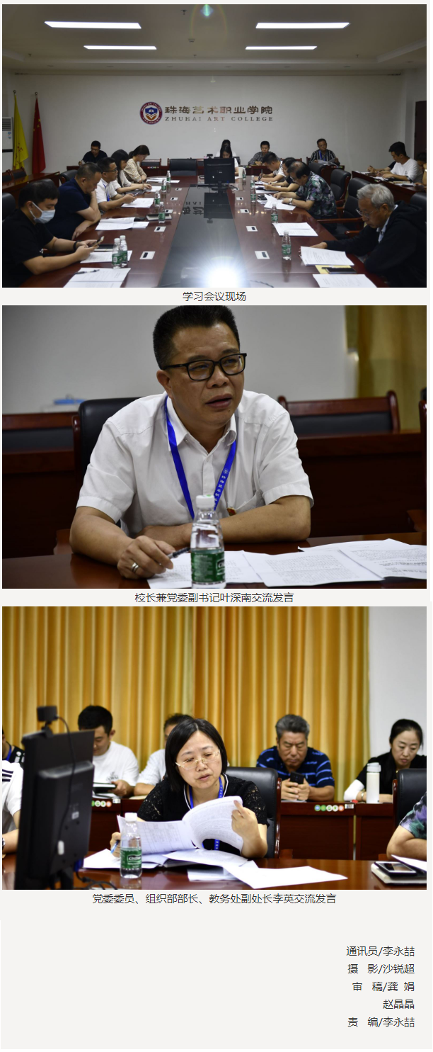 会上,校长兼党委副书记叶深南、马克思主义学院院长张峨建、党委委员兼组织部部长李英等结合实际作了学习交流发言,与会人员围绕学习贯彻习近平总书记致厦门大学建校100周年贺信精神进行了热烈的讨论,与会人员一致认为,习近平总书记致厦门大学建校100周年贺信立意高远、思想深邃、内涵丰富,充分体现了习近平总书记对高等教育的高度重视和关心支持,对高校广大干部师生员工的关怀厚爱和深切期望,同时也为我们进一步办好具有艺术特色的高等院校指明了前进方向,提供了根本遵循。