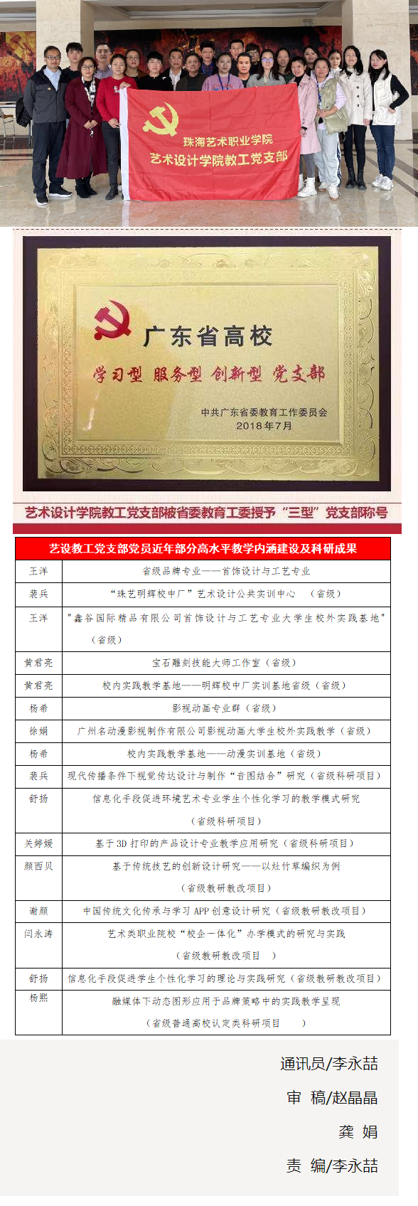 近日,广东省委教育工委公布了第四批全省党建工作示范高校、标杆院系、样板支部培育创建单位名单。我校艺术设计学院教工党支部成功入选第四批“全省党建工作样板支部”。