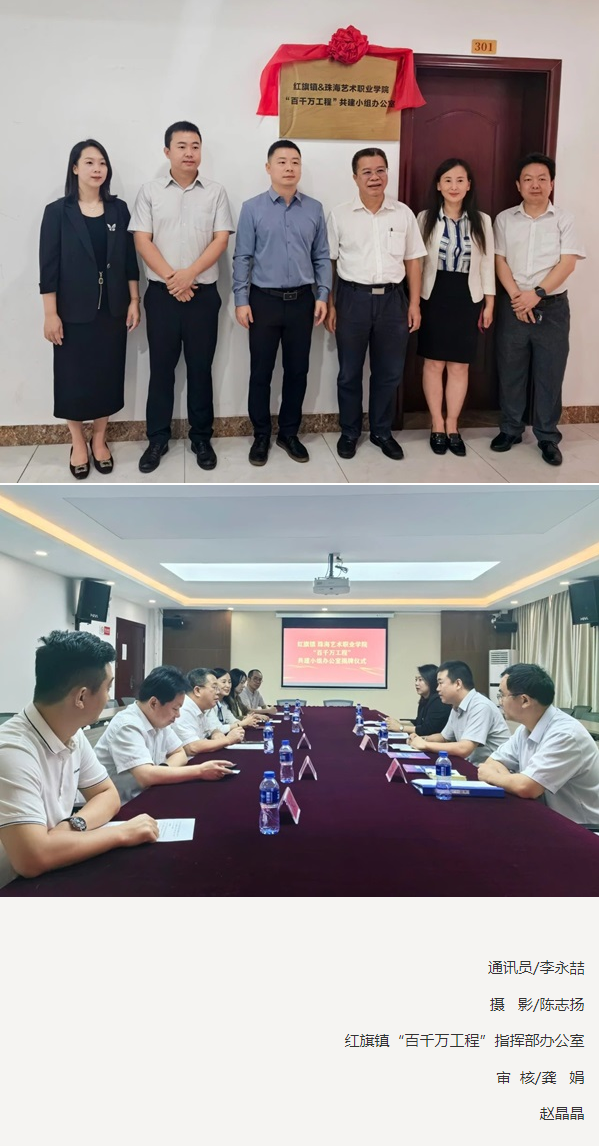 为全面贯彻落实省、市、区“百千万工程”部署要求,进一步推进高校联区镇工作在红旗镇走深走实,红旗镇与珠海艺术职业学院成立合作共建小组办公室,负责协调双方资源,推动高校联区镇助力“百千万工程”结对共建项目落地,确保重点任务的顺利实现。接下来,双方将通过合作共建的一系列措施,为持续推动红旗经济社会高质量发展贡献更大力量。