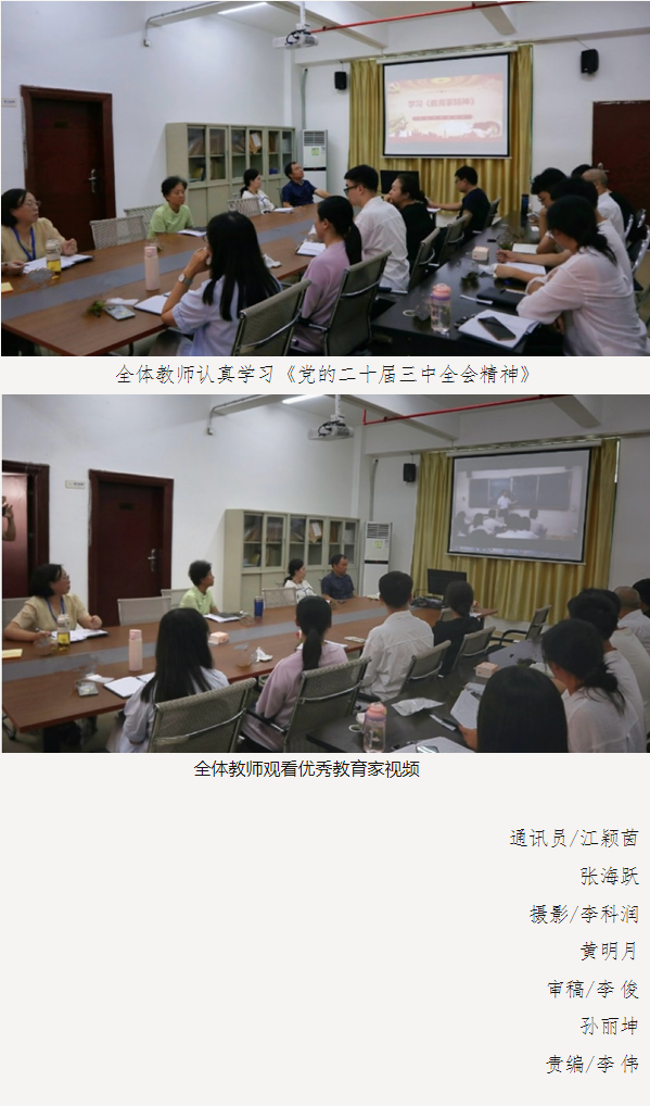 会上首先由学院党总支书记、副院长李俊宣讲贯彻落实党的二十届三中全会精神,强调要始终坚持党的领导,把准改革方向,坚持党对教育事业的全面引领,贯彻新时代党的教育方针。